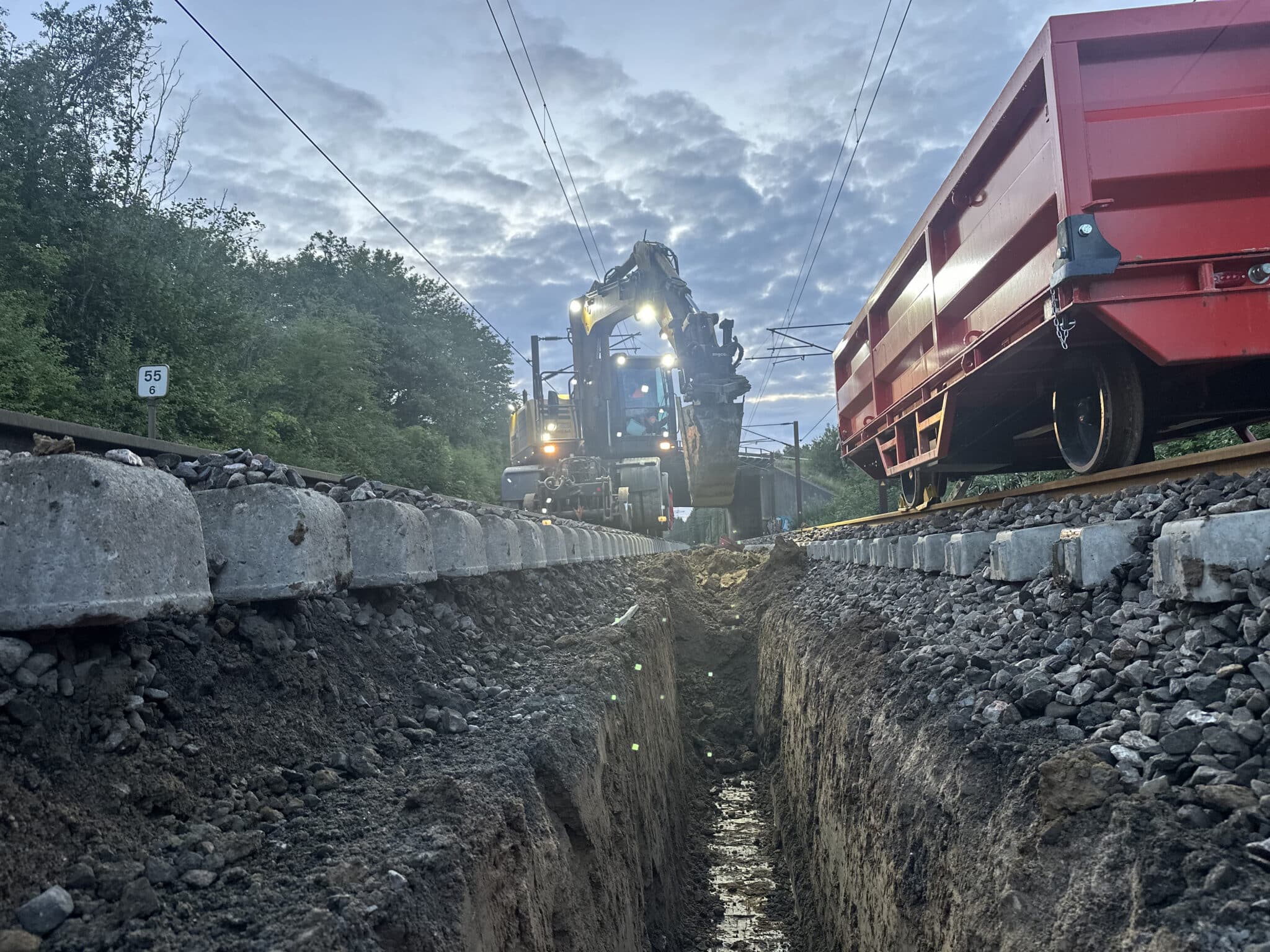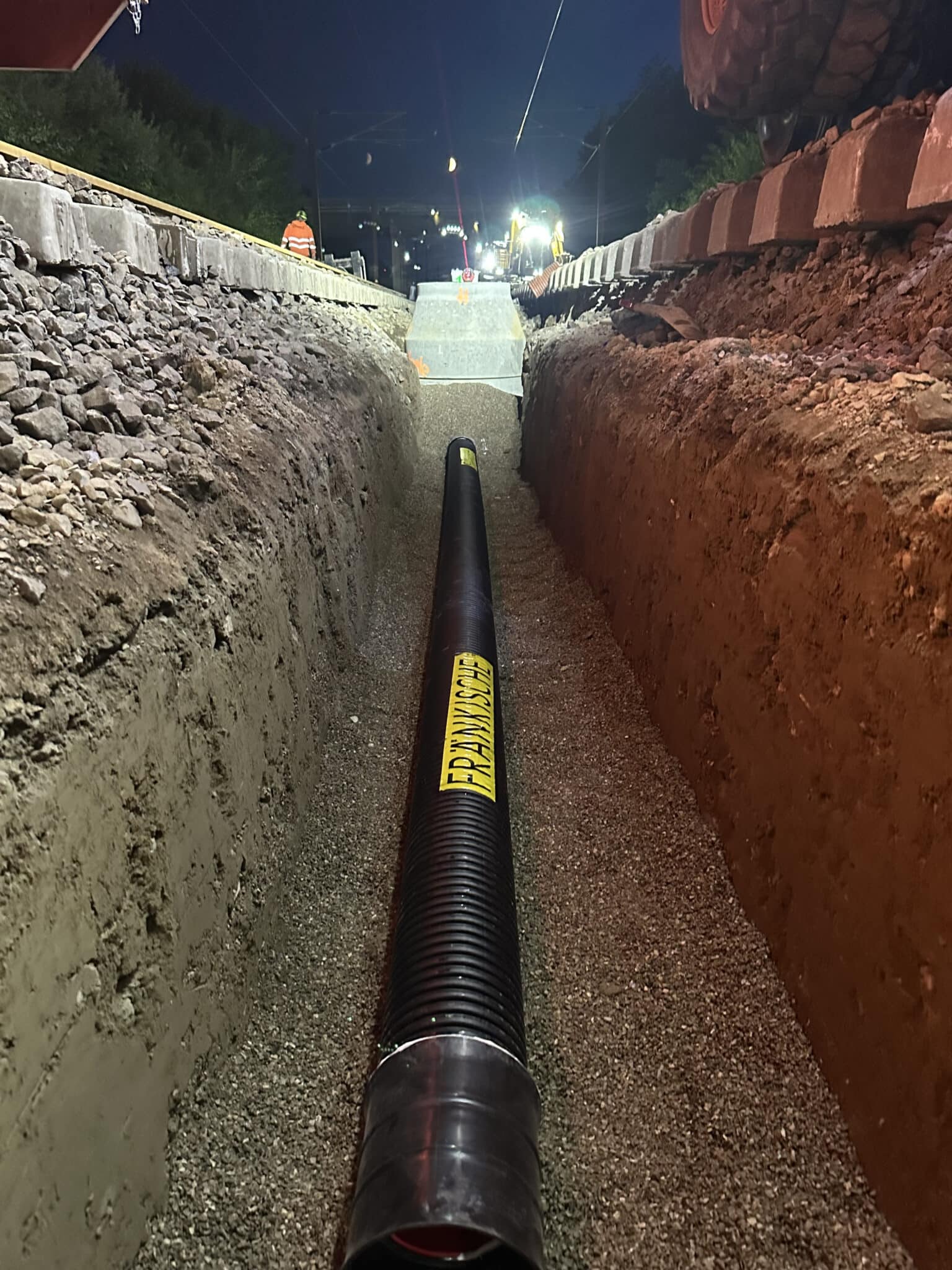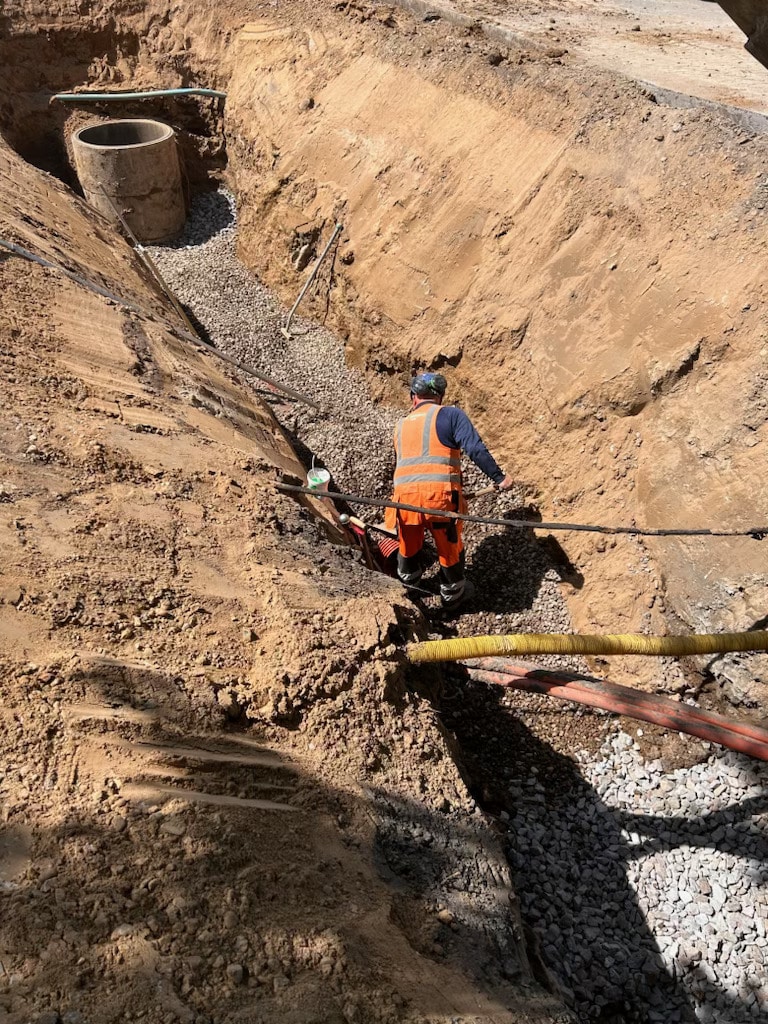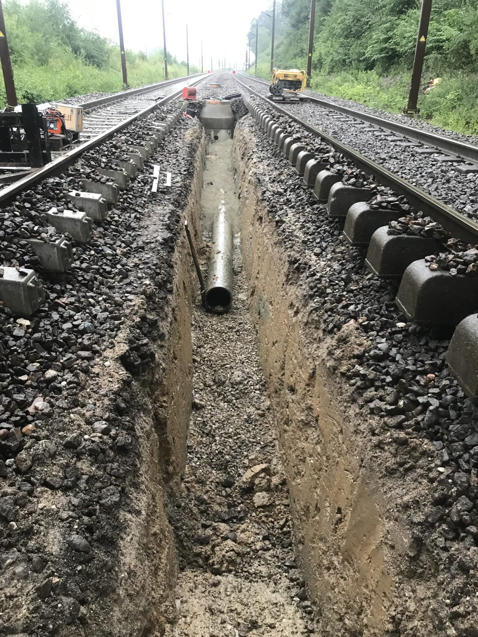 Vi løser alle opgaver inden for afvanding og kloak, i forbindelse med ny etablering af spor men også renovering af eksisterende. Alle former for grøfte opgaver med registrering af grøftens forløb før og efter endt arbejde.